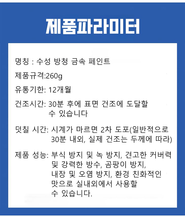 무취, 무해물질! 100년 품질 보증! 이 기간 중 다시 녹이 발생할 경우, 3배 배상 약속!