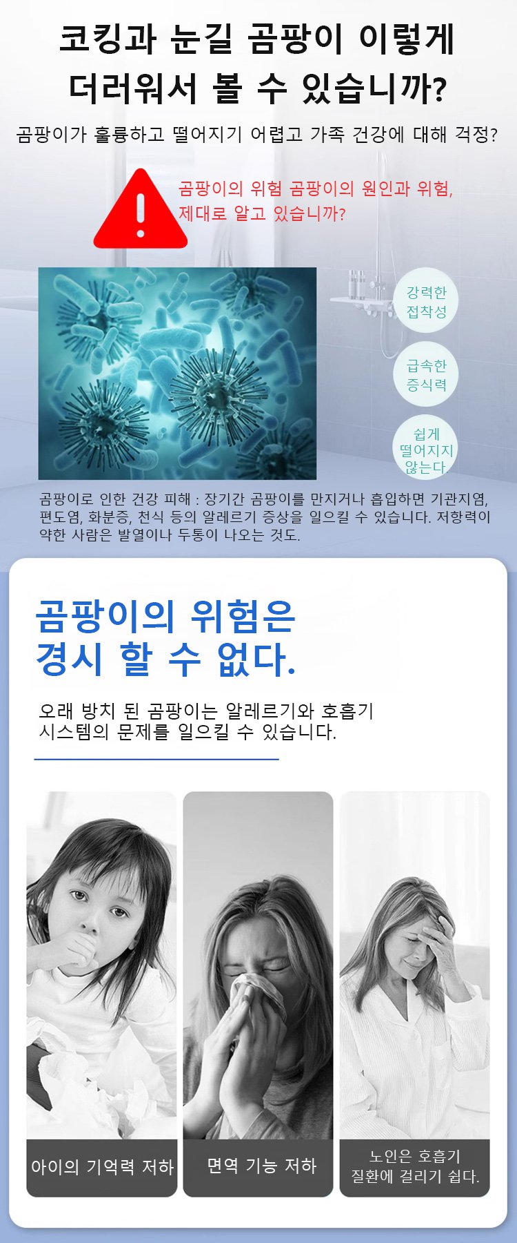 【한 번 닦아도 깨끗·효율적인 곰팡이 제거】곰팡이 얼룩 및 곰팡이 클리너